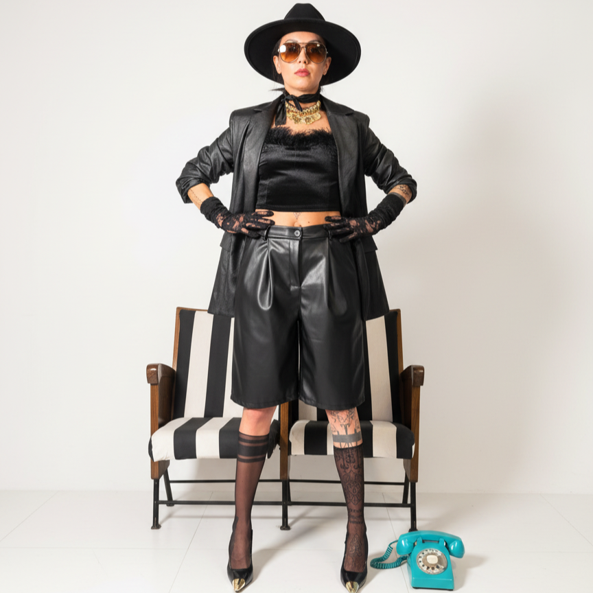 BERMUDA IN ECOPELLE: MODERNO E COMUNQUE FEMMINILE. PER CHI SA GIA’ CHI INDOSSA  I PANTALONI IN CASA… E NO NON E’ IL MARITO!