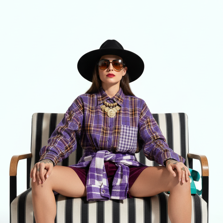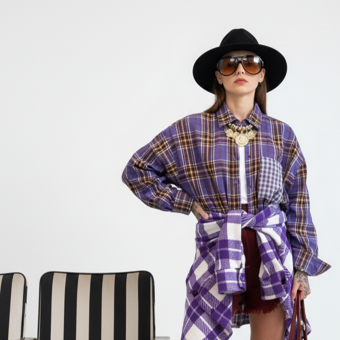 CAMICIA A QUADRI OVER MOTIVI MISTI A QUADRETTI VIOLA:SE ANCHE LA TOVAGLIA POTESSE SCEGLIERE, VORREBBE ESSERE QUESTA CAMICIA!!!