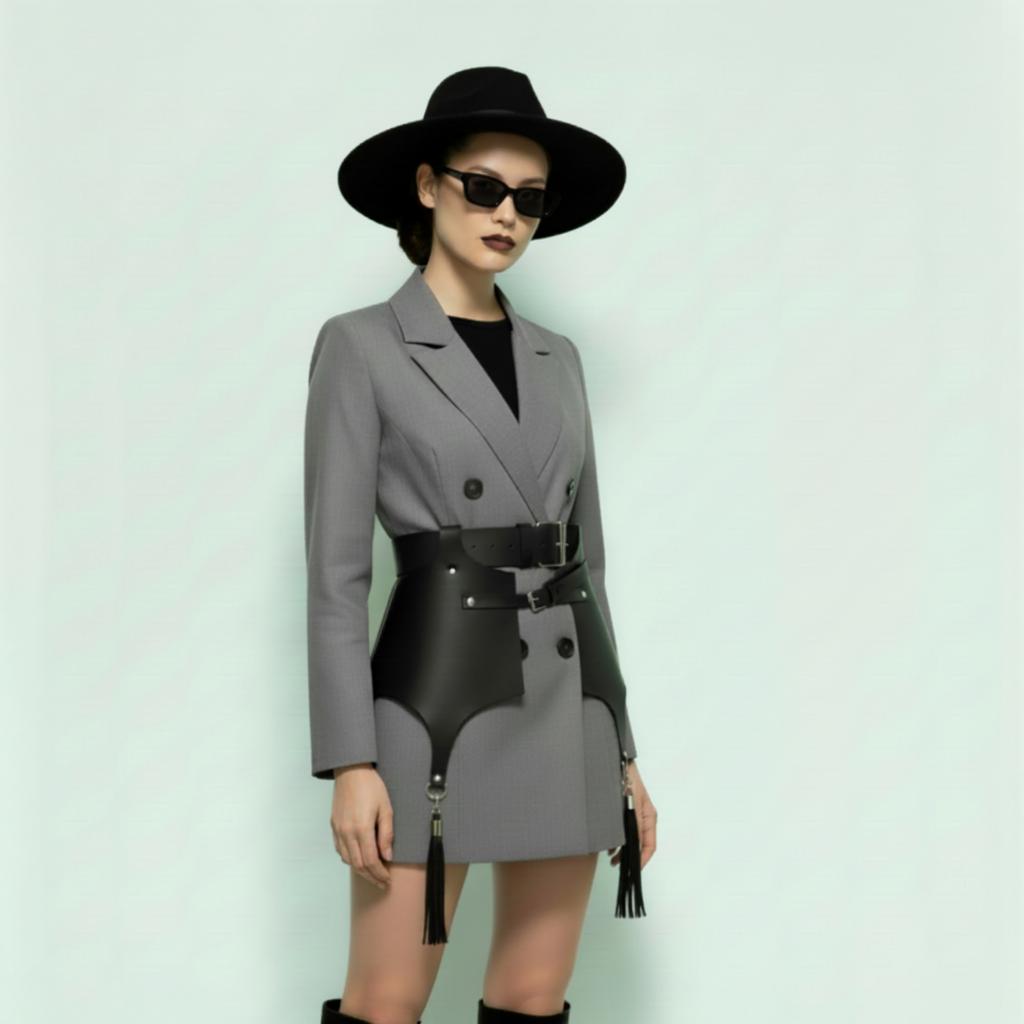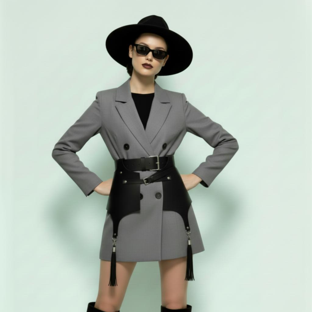 L’ACCESSORIO PIÙ AUDACE E STRUTTURATO DELLA COLLEZIONE, UN VERO E PROPRIO CORSETTO MODERNO CHE RIDEFINISCE LA SILHOUETTE CON UN TOCCO DARK-CHIC.PROGETTATA PER TRASFORMARE OGNI OUTFIT IN UNA DICHIARAZIONE DI POTERE….QUESTA CINTURA BUSTIER ABBRACCIA LA VITA E SI ESTENDE CON LINEE ARCHITETTONICHE SUI FIANCHI, IMPREZIOSITA DA FIBBIE METALLICHE E DAL DETTAGLIO ICONICO DELLE NAPPINE FLUTTUANTI. INDOSSALA SOPRA IL NOSTRO BLAZER GRIGIO PER UN LOOK SARTORIALE CHE GIOCA CON LA SEDUZIONE E IL RIGORE.
