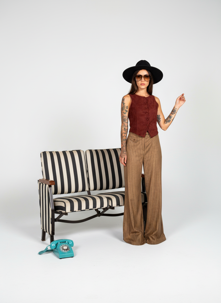 GILET ACCOLLATO IN VELLUTO, ELEGANTE E MINIMAL: IMPECCABILE IN UFFICIO E’ PERFETTO PER CHI CHIUDE LE RIUNIONI CON STILE E APRE LA SERATA CON CATTIVERIA.