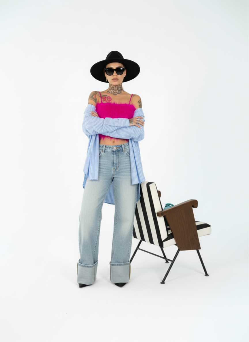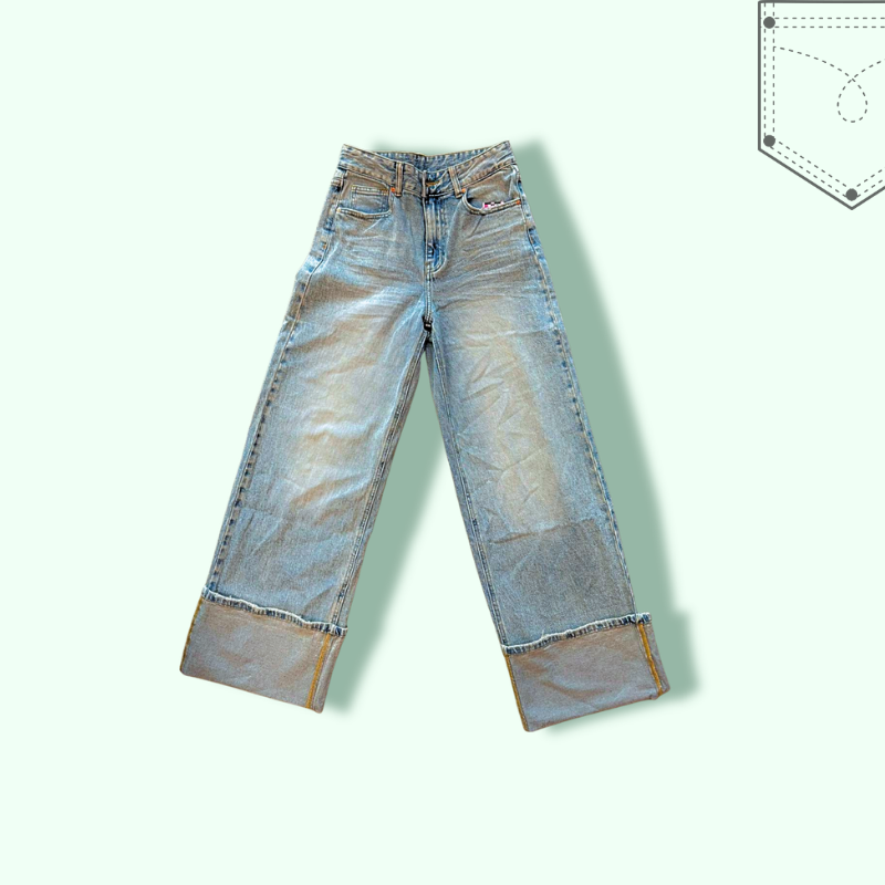 JEANS WIDE LAG CHIARO CON RISVOLTO ALTO: UN JEANS PER CHI AMA SEGUIRE LE MODE, PERFETTO CON UN TACCO AFFILATO CHE SPUNTA DAL FONDO PER UN LOOK DA SERATA, IMPECCABILE CON UNA SNEAKERS MENTRE  CORRI A PRENDERE IL FIGLIO A SCUOLA… UN MUST HAVE PER IL TUO GUARDAROBA!