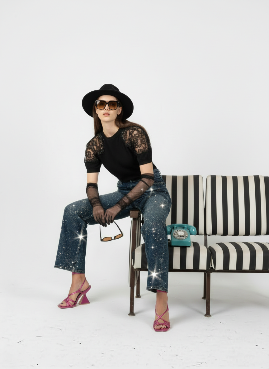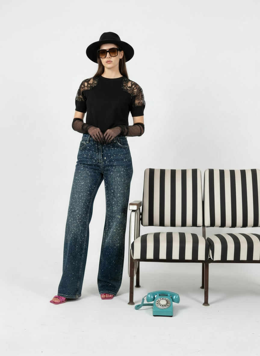 JEANS MODELLO WIDE LEG: CON BRILLANTI.. PERCHE’ LE ALTRE CADONO , TU INVECE BRILLI SEMPRE!