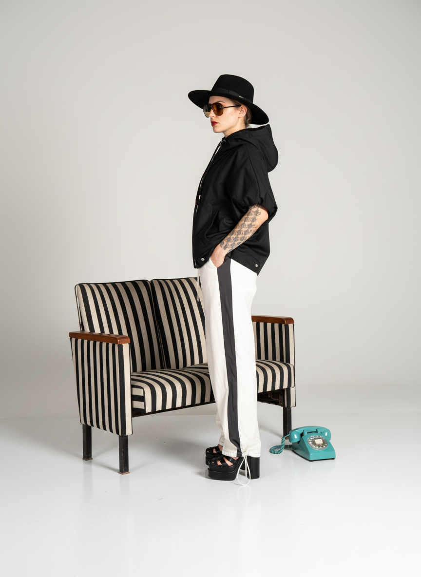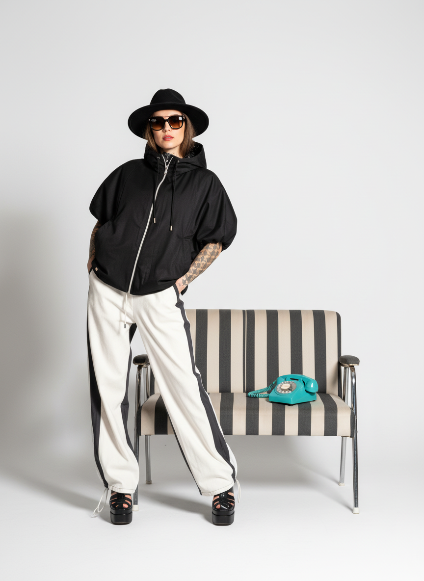 PANTALONE CARGO BICOLOR BIANCO-NERO SI TRATTA DI UN JOGGER WIDE-LEG CON FONDO DA STRINGERE A GAMBA DRITTA MOLTO AMPIA DAVANTI IN TESSUTO DENIM BIANCO DIETRO NERO IN TESSUTO TECNICO , LO YIN-YANG DELLO STREET STYLE. IDEALE PER CONFONDERE UNA SCIVOLATA IN UN PASSO BREAKDANCE!