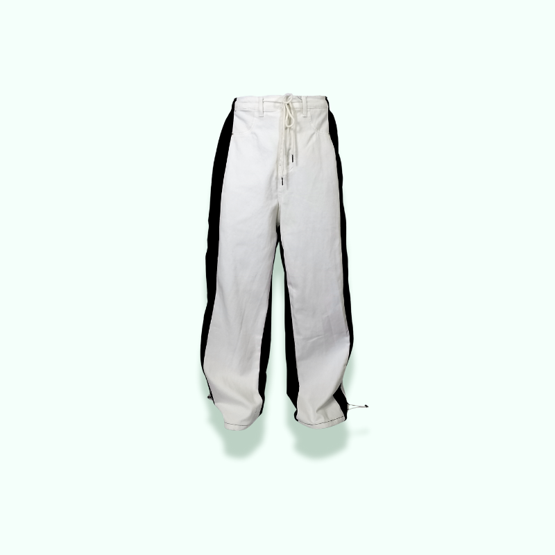 PANTALONE CARGO BICOLOR BIANCO-NERO, YIN-YANG DELLO STREET STYLE. IDEALE PER CONFONDERE UNA SCIVOLATA IN UN PASSO BREAKDANCE!