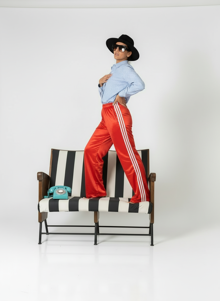 PANTALONE SAN ZARRO DAL TAGLIO SPORTIVO MODELLO WIDE-LEG (A GAMBA LARGA) IN TRICOT LUCIDO: PIU’ LUCIDA E FLUO DI UN’AUTO PIMPATA DA ALETTONI E NEON.
