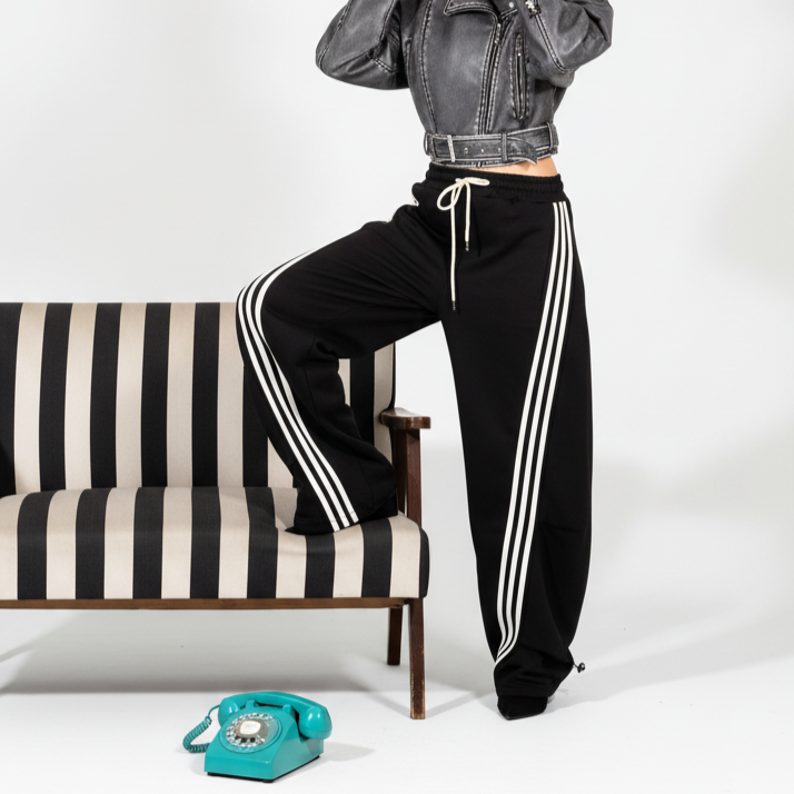 PANTALONISAN ELIA IL PANTALONE TUTA BALLOON CON BANDE LATERALI, QUESTO MODELLO BALLOONSI DISTINGUE PER IL TAGLIO AMPIO E BOMBATO CHE SI RESTRINGE LEGGERMENTE VERSO LA CAVIGLIA CON DEI LACCI:LA PROVA CHE NON SERVE UN TACCO 12 PER SENTIRSI UNA BOMBA!