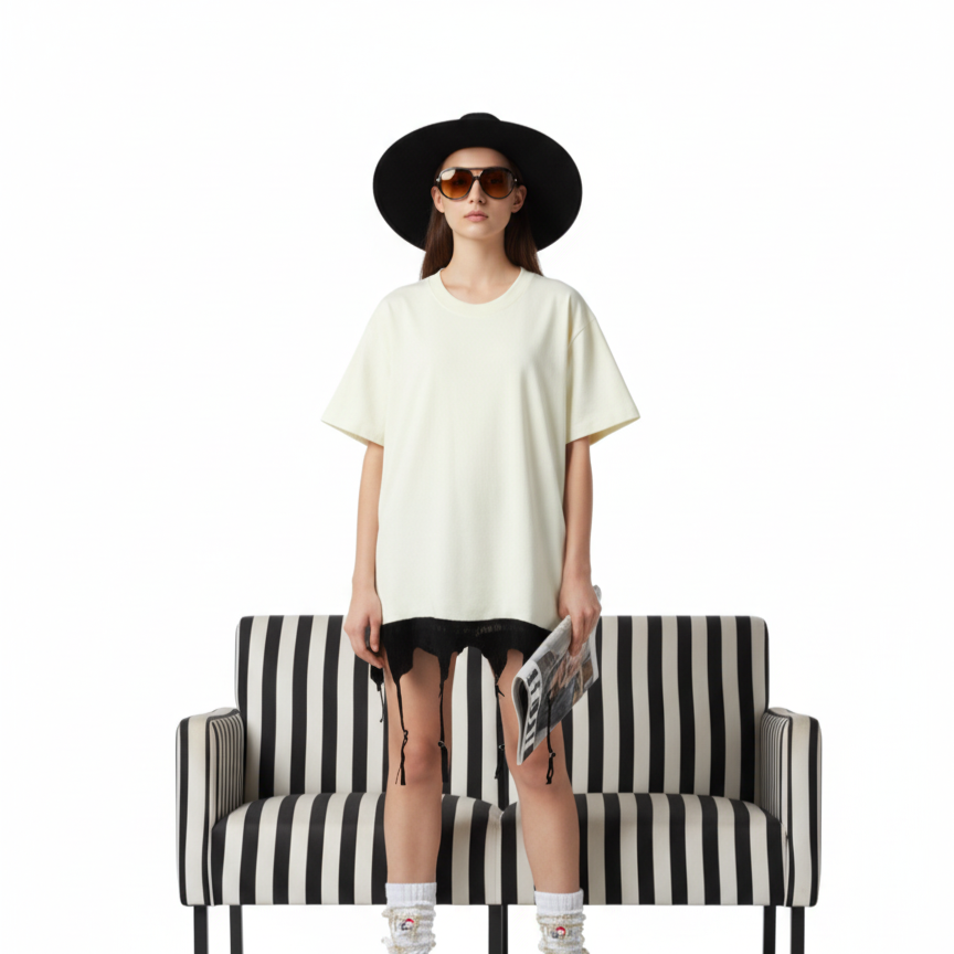 T-SHIRT BIANCA, IL LAVORO SPORCO LO FA IL DETTAGLIO: UN REGGICALZE CHE SOSTIENE LE TUE MARACHELLE.