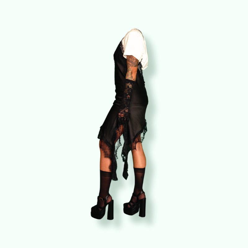 VESTITO RASO CON SPALLINE SOTTILI E DETTAGLI IN PIZZO, PERFETTO PER SEMBRARE LA NIPOTE… MA BALLARE COME LA NONNA!